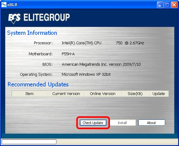 | step2: | Click “Check Update” button for scan your motherboard BIOS status. |